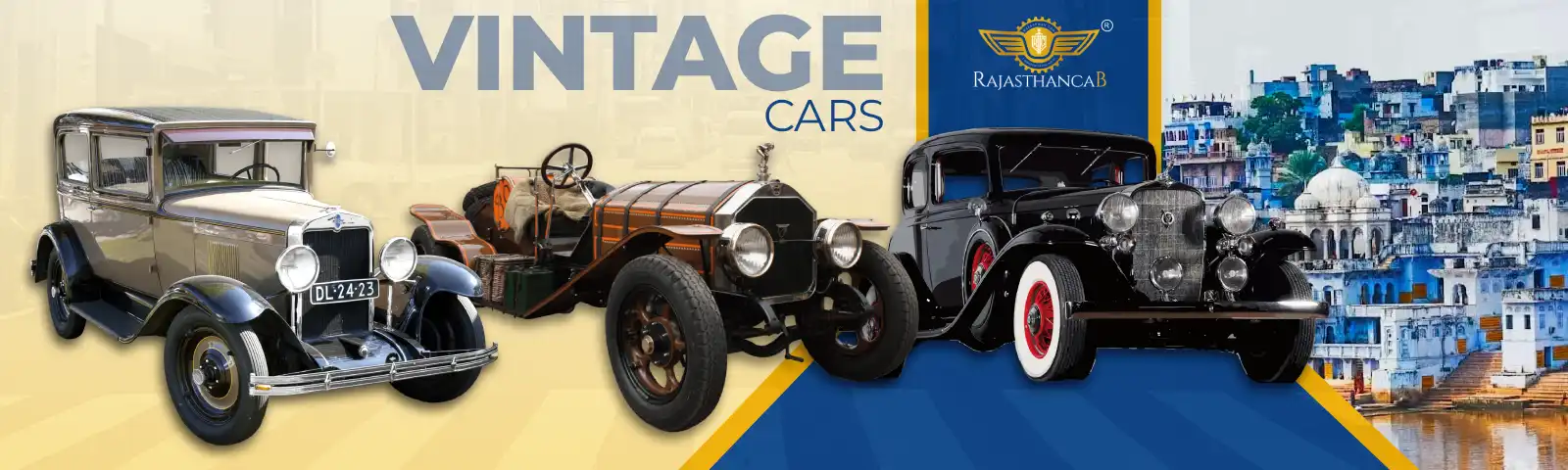 Pushkar rental company provides numerous vintage cars to various preferences. Examples Cadillac Eldorado, Rolls-Royce Silver Cloud, Mercedes-W123, Chevy Bel Air. All cars are well maintained in comfort and safety. Rajasthan Cab offers car services in weddings, corporate events, tours, and photoshoots.